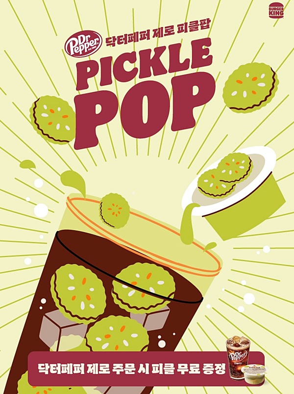 버거킹이 SNS에서 화제를 모았던 닥터페퍼와 피클 조합의 이색 메뉴 ‘닥터페퍼 제로 피클팝’을 오늘(18일)부터 매장에서 한정 판매한다.